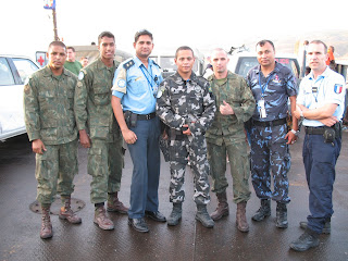 Nas fotos seguintes podemos ver o Tenente Azevedo com Fuzileiros Navais brasileiros, bem como om UNPOLs da França e do Nepal. Eo relato continua.